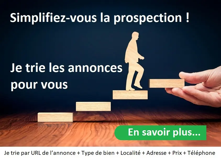 Vous recevez l’accès à la liste, avec l’URL des annonces des particuliers, le type de bien, la localité, l’adresse, le prix, le téléphone pour tous les nouveaux biens dans votre région.